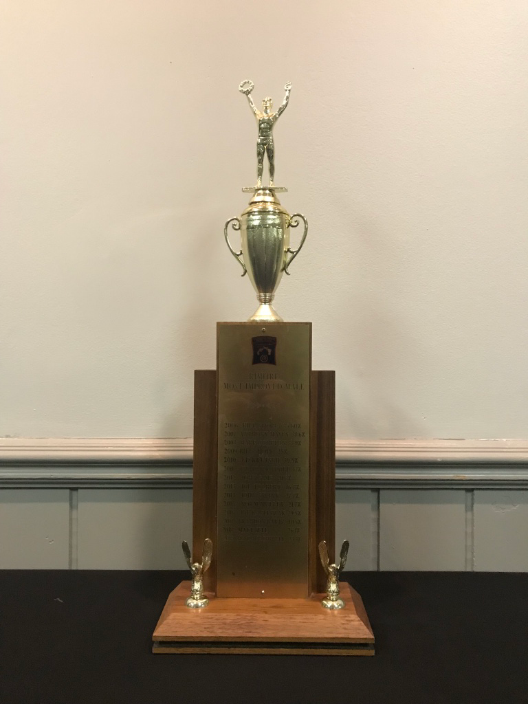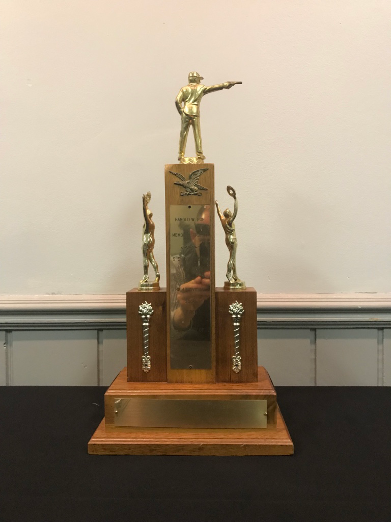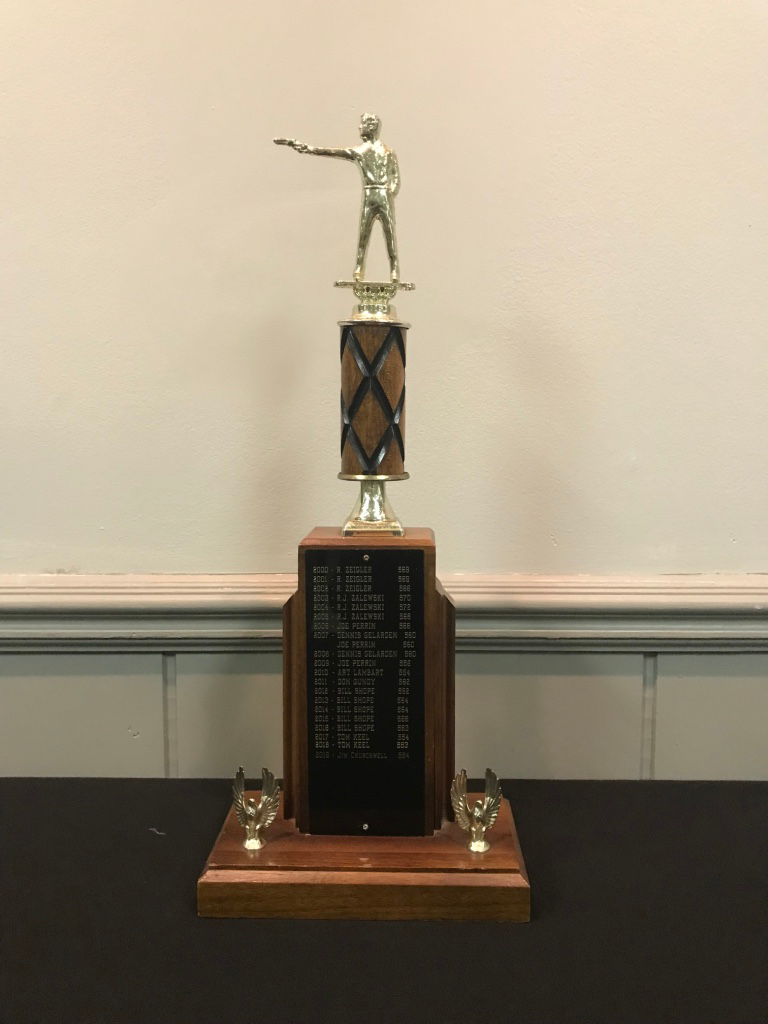 This is an undedicated trophy. This award established in 1981 to recognize the competitor 60 years of age or older for his or her highest average over a minimum of 75% of matches during the season in the .22 Rimfire League. At this time no records predate 1981. It is unknown how this award was originated.
